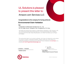 TSP Zero Landfill Certification Certificate